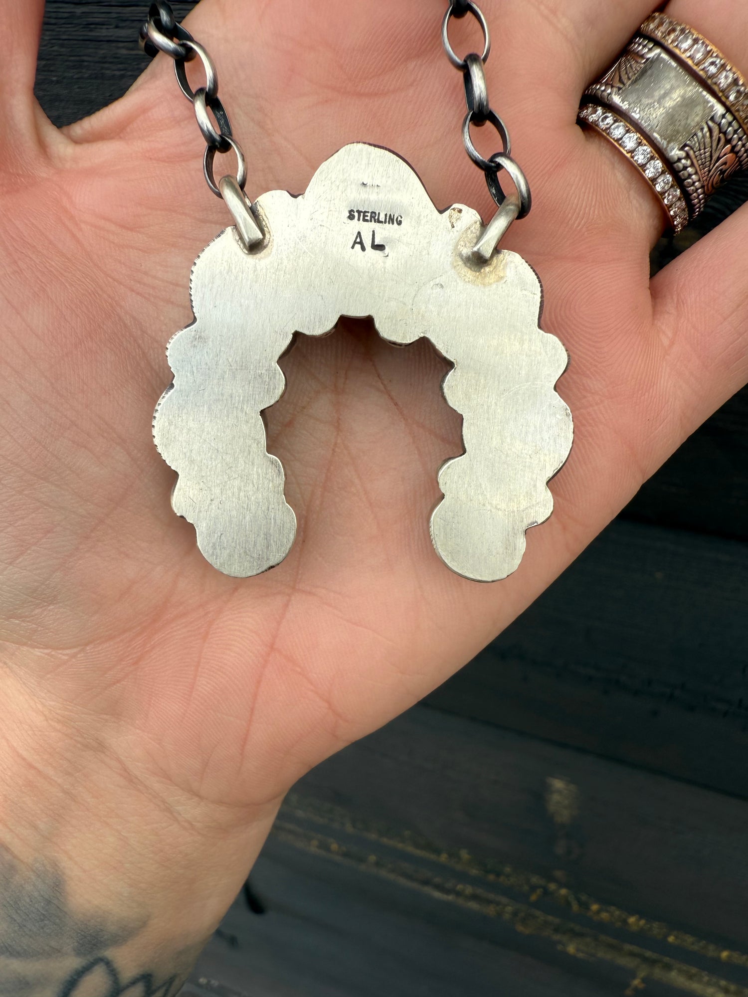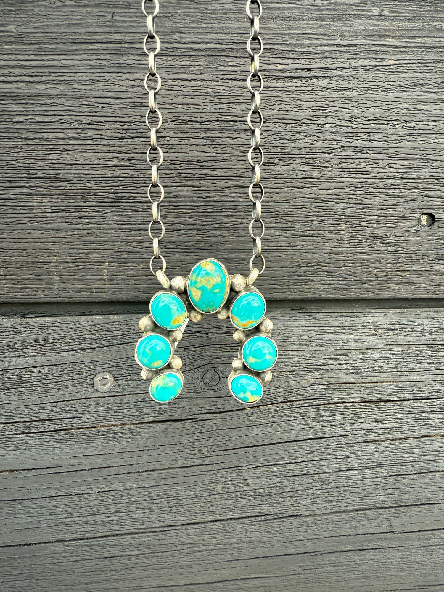 Gorgeous Kingman Turquoise Naja Necklace! Made by & stamped by Navajo artist, Augustine Largo!