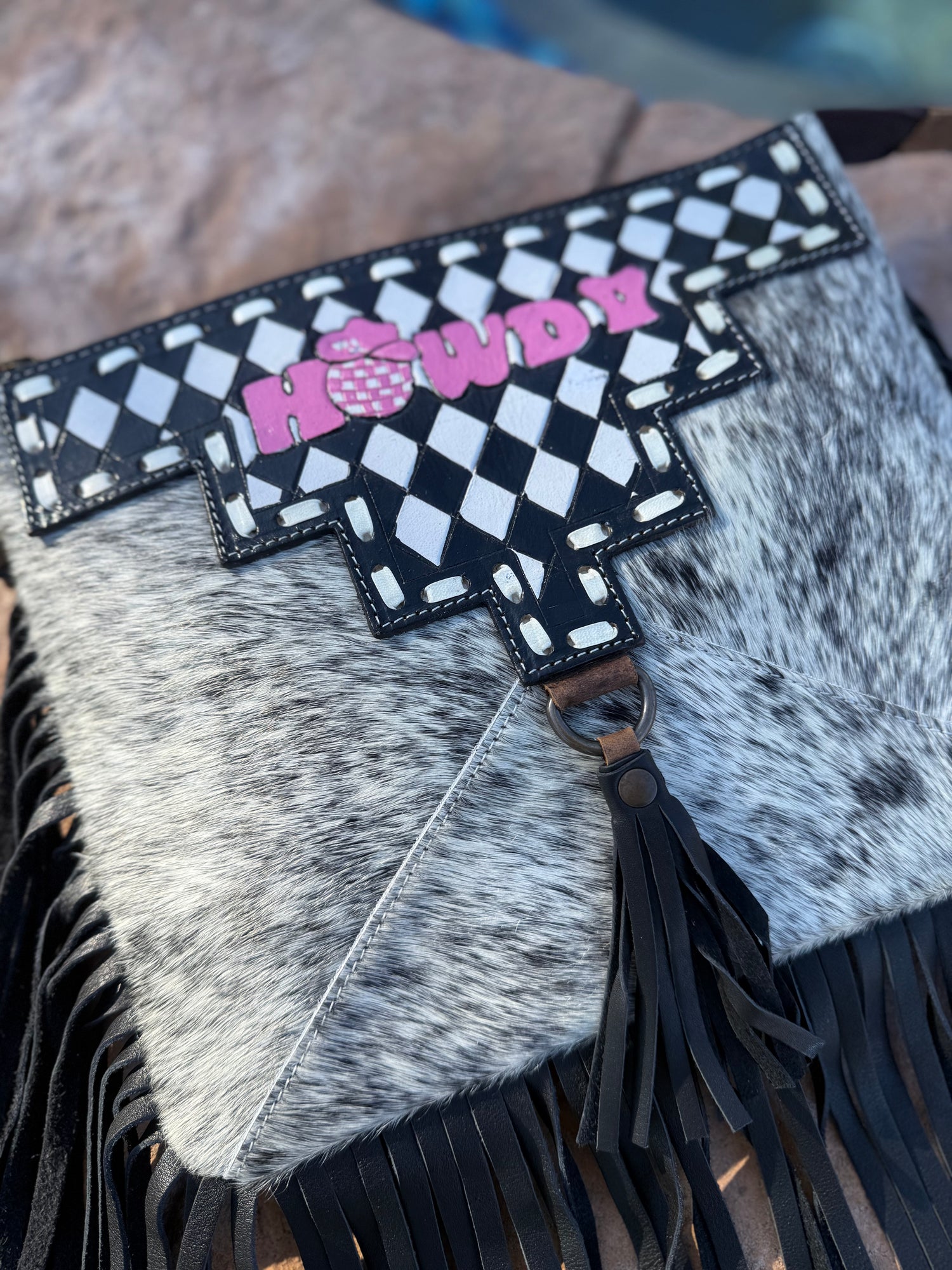 Checkered Howdy Leather and Cowhide Crossbody Purse
