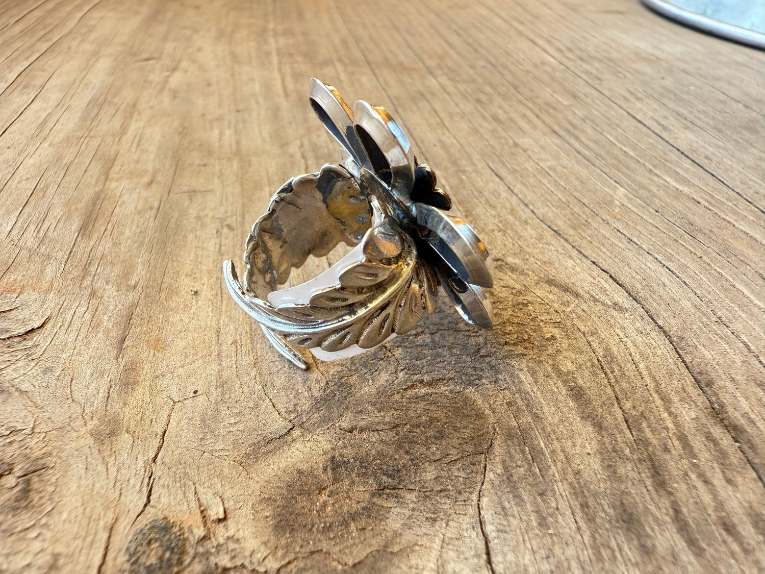 Christina Yazzie Pink Conch Adjustable Flower Ring