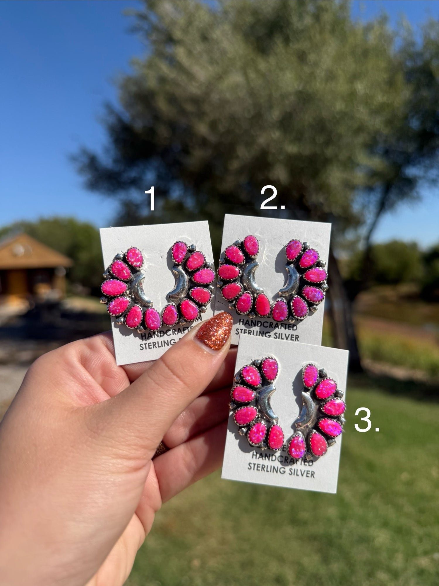 Durena Wauneka • Hot Pink Opal Half Moon Cluster Studs