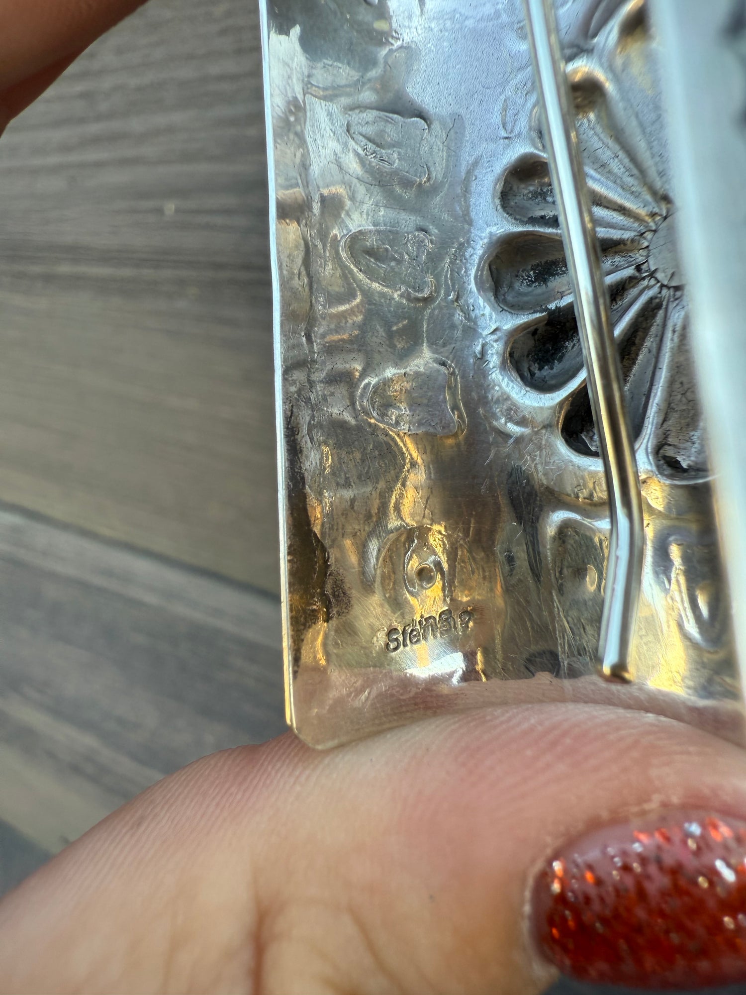 Signed “Sterling”. Handmade in New Mexico, artist is unknown. Has a hook on the back to hook into your hair or ponytail holder!