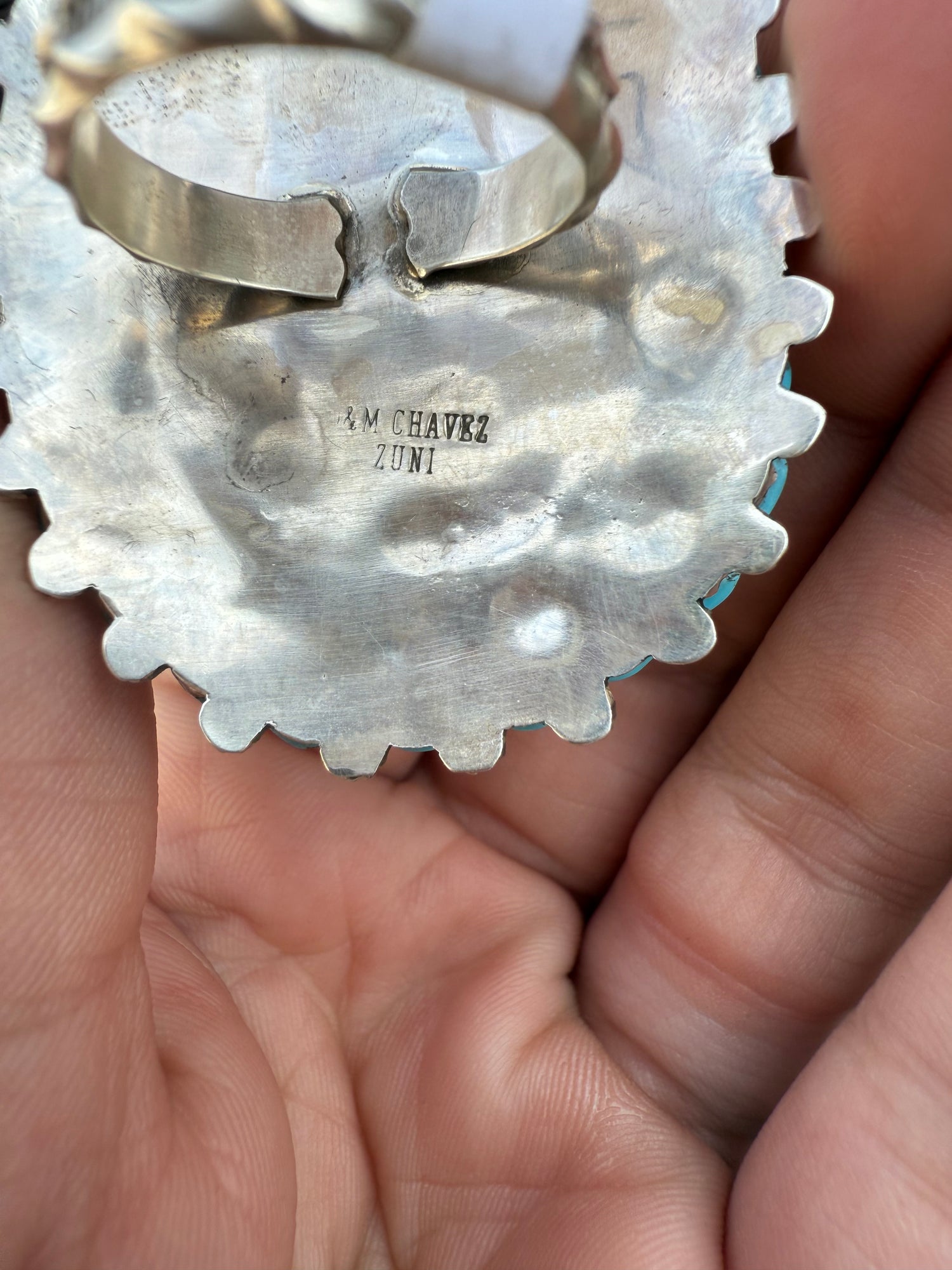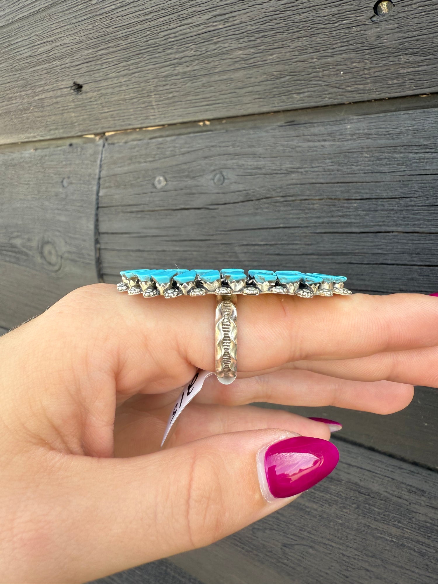 Size 8 Zuni Made Sterling Silver & Block Turquoise Ring